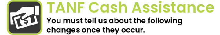 Changes must be reported for everyone who is on your assistance case and whose income is counted in determining eligibility, including children’s income and their resources, like bank accounts.